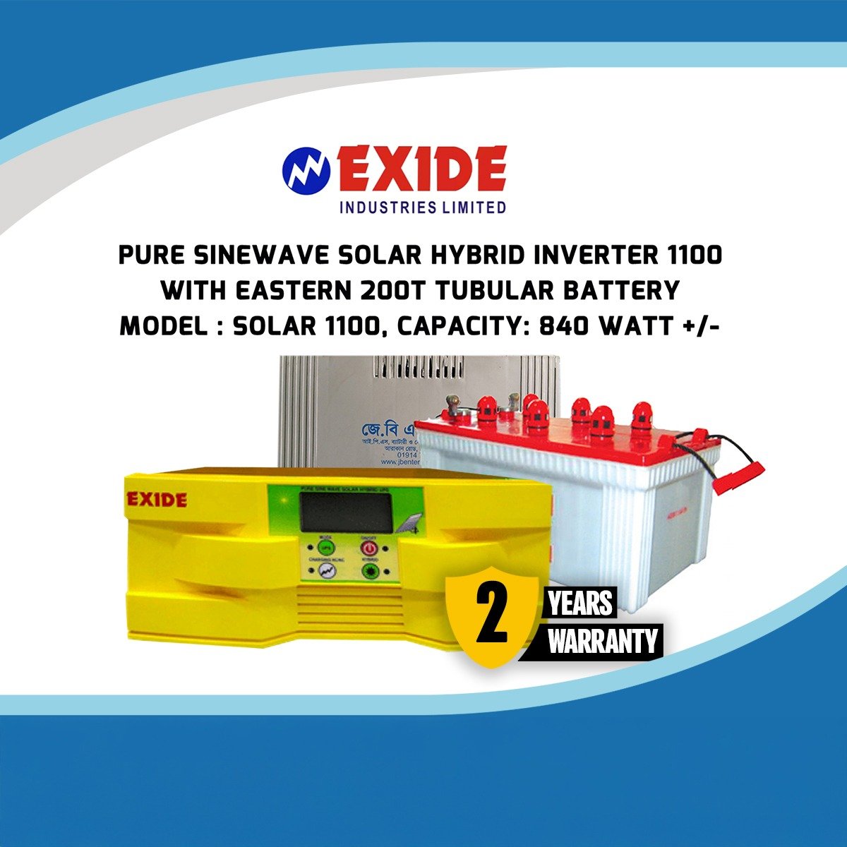 - EXIDE SOLAR HYBRID IPS UPS 700 500 WATT +/- PURE SINE WAVE WITH 120AH BATTERY PACKAGE FOR 3 FAN 6 LIGHTS WITH OFFICIAL WARRANTY