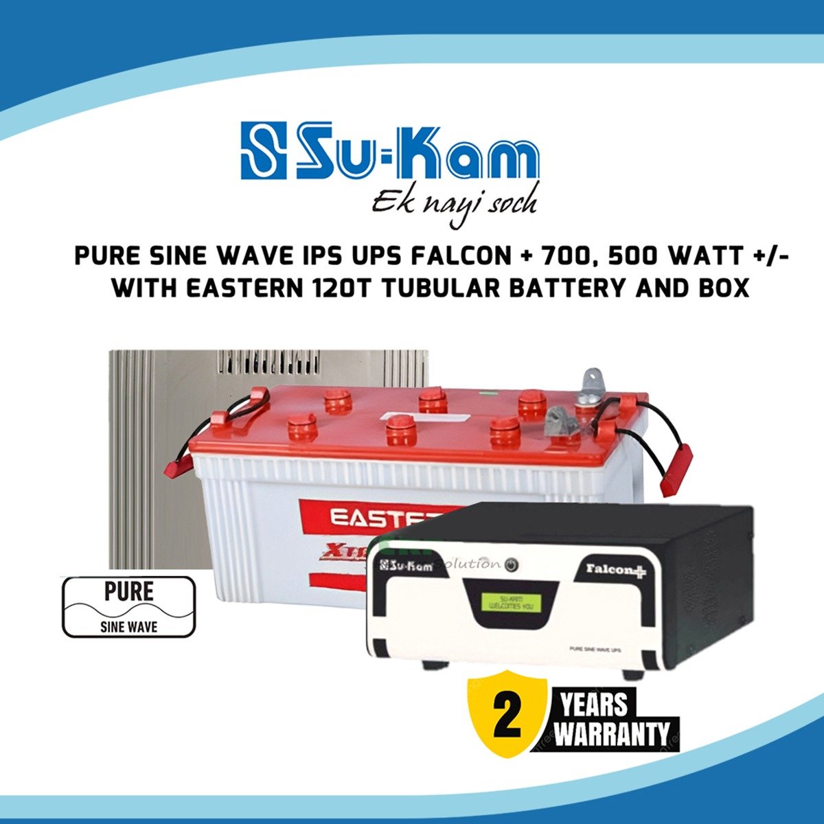 Sukam Pure Sine Wave Ips Ups Falcon Plus 700 12v With Battery 120ah